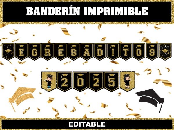 Banderín "EGRESADITOS 2025" + separadores + imágenes para decorar