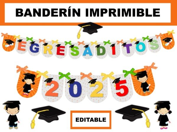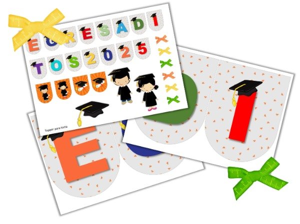 Banderín "EGRESADITOS 2025" + separadores + imágenes para decorar