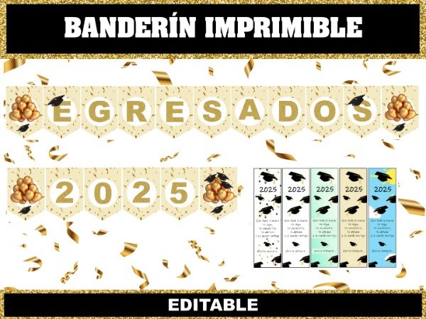 Banderín IMPRIMIBLE "EGRESADOS 2025" + señaladores