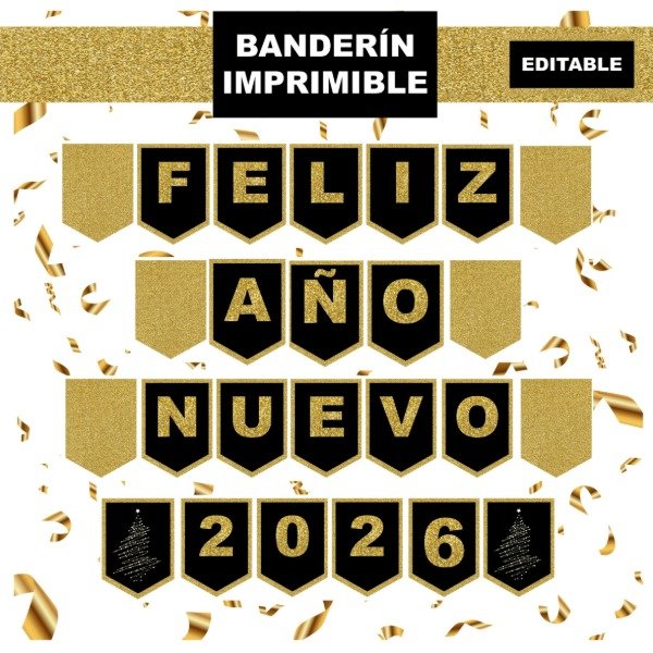 Banderín IMPRIMIBLE "FELIZ AÑO NUEVO 2026"