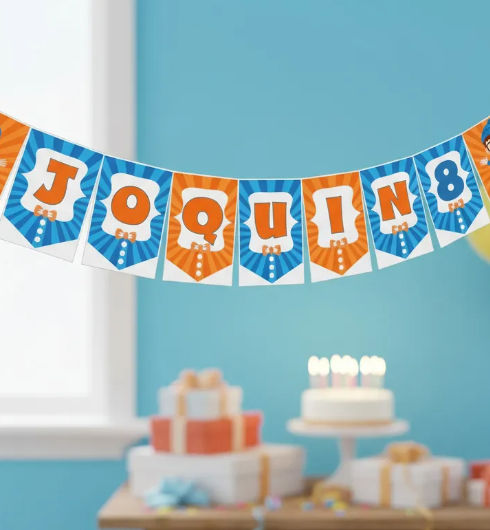 Banderín "FELIZ CUMPLEAÑOS" + separadores + Banderines para nombre
