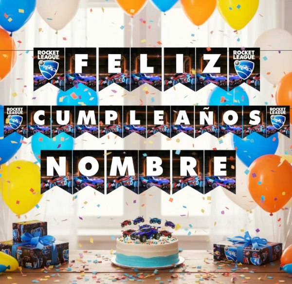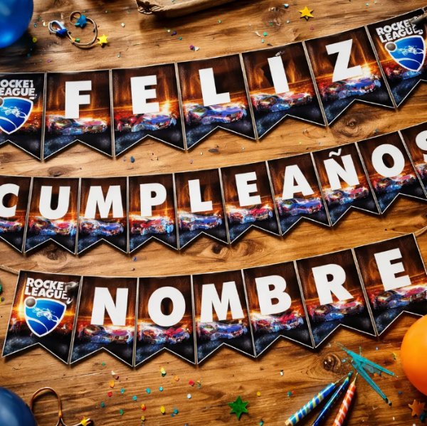Kit Imprimible Banderín Cumpleaños Rocket League Editable