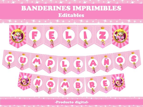 Banderín "FELIZ CUMPLEAÑOS" + separadores + Banderines para nombre