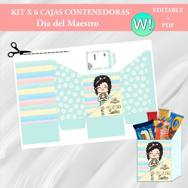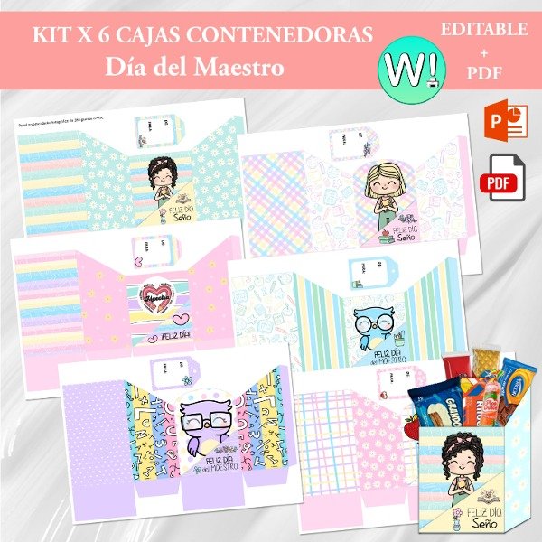 El kit contiene 6 modelos de cajas contenedoras (sin tapa) editables en PowerPoint y PDF listo para imprimir.