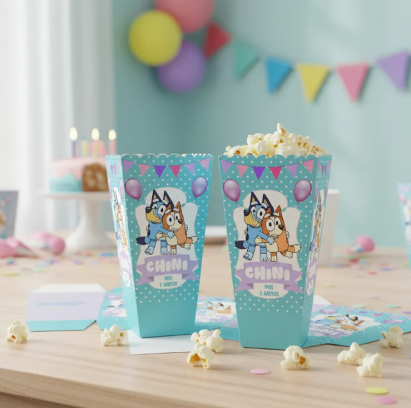 Kit Imprimible Box Popcorn Pochoclera Bluey
