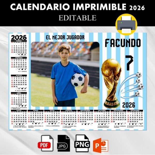 Plantilla para que edites e imprimas tu calendario 2026, ideal como souvenirs para el cumple de tu peque.