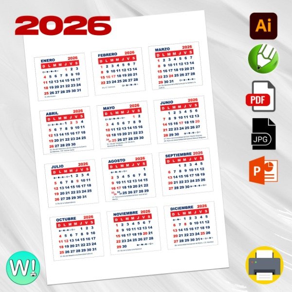 Calendarios Mignon 2026: Vectores Pdf para Corel e Illustrator + PowerPoint + JPG