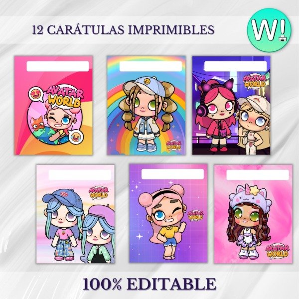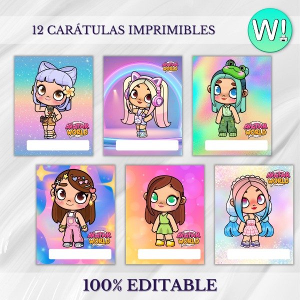 El kit incluye 12 Carátulas Imprimibles en formato JPG, PowerPoint y PDF en tamaño Nº3 (24x19 cm) y A4 (21x29,7 cm) para que edites el texto con el programa que prefieras o para que las imprimas y puedas escribirlas a mano.