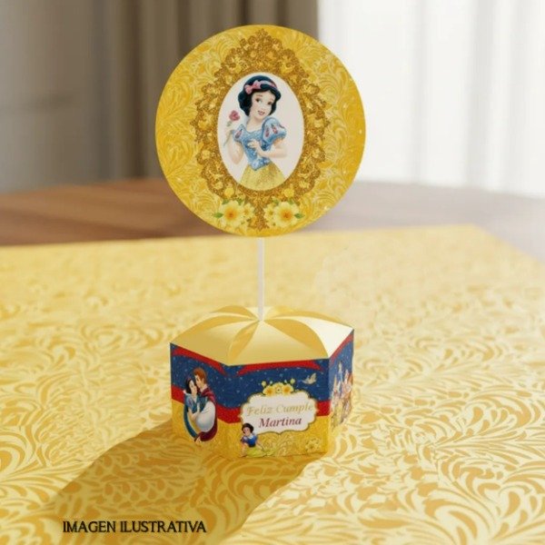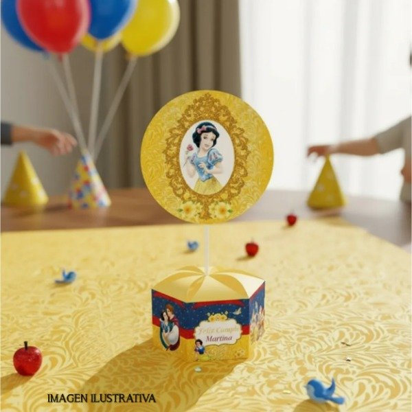 Kit Imprimible Centro Mesa Hexagonal Blancanieves Editable