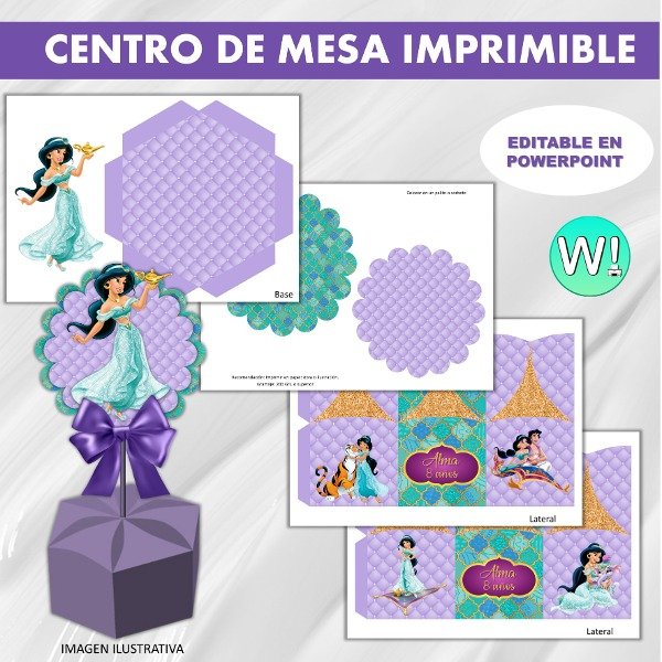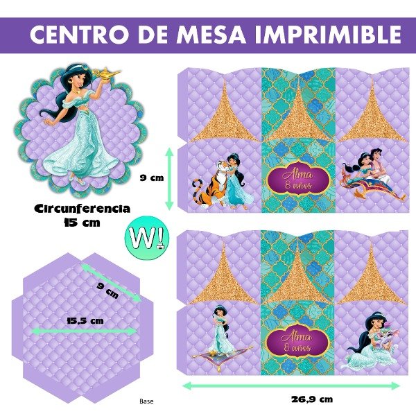 Kit Imprimible Caja Hexagonal Centro De Mesa Jasmine Aladdín