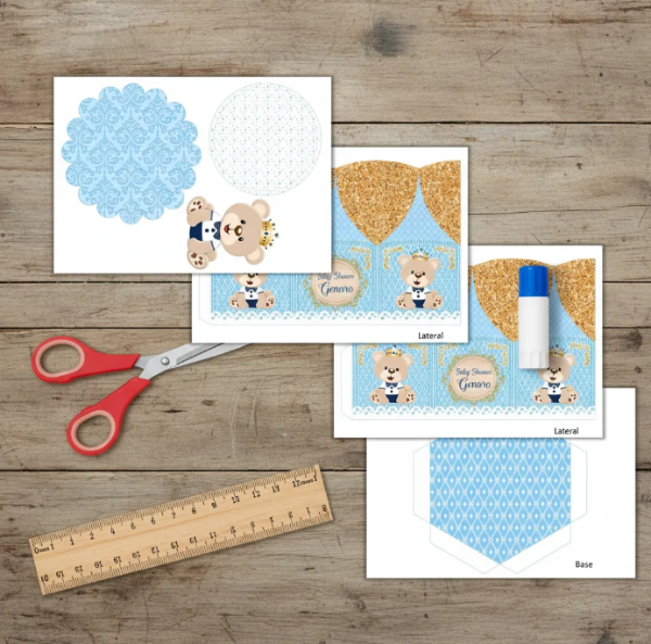 Se imprime en 4 hojas A4. Medidas en la foto.