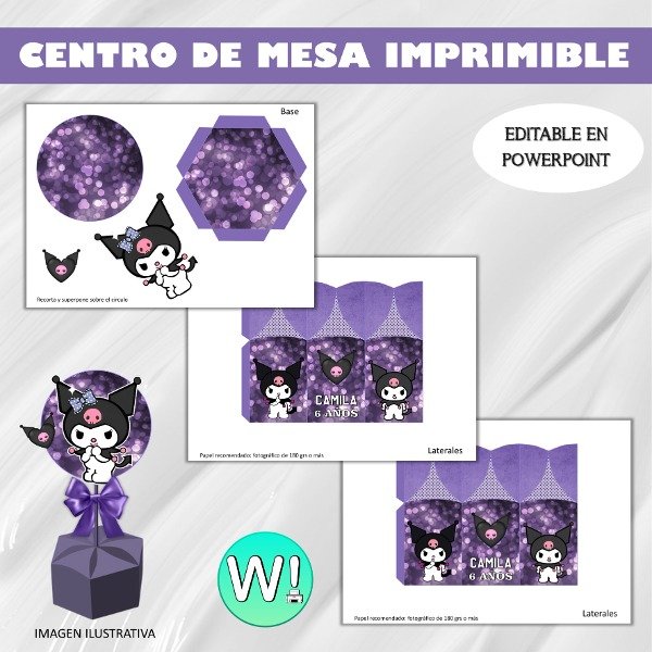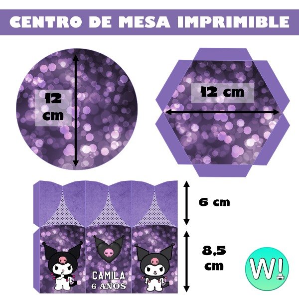 Kit Imprimible Centro Mesa Hexagonal Kuromi