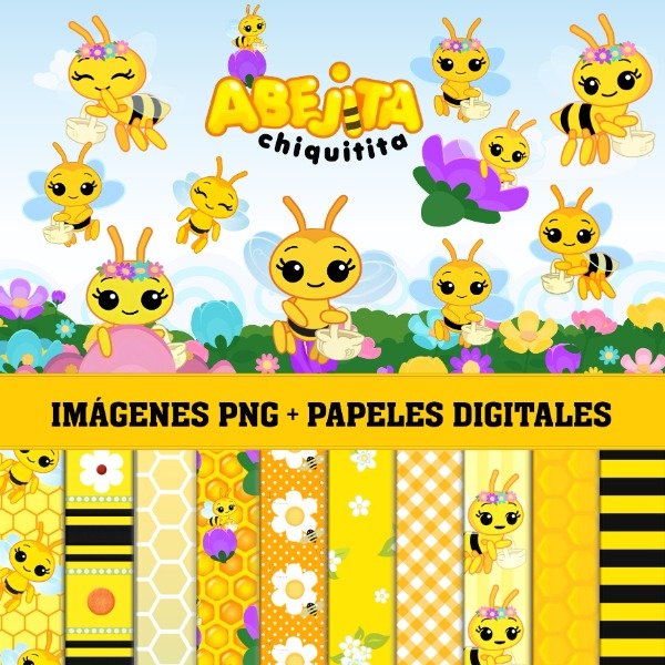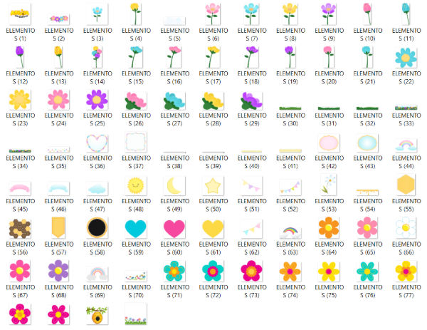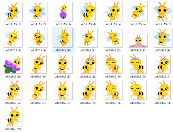 - 110 imágenes en formato PNG (29 abejitas + 81 elementos)