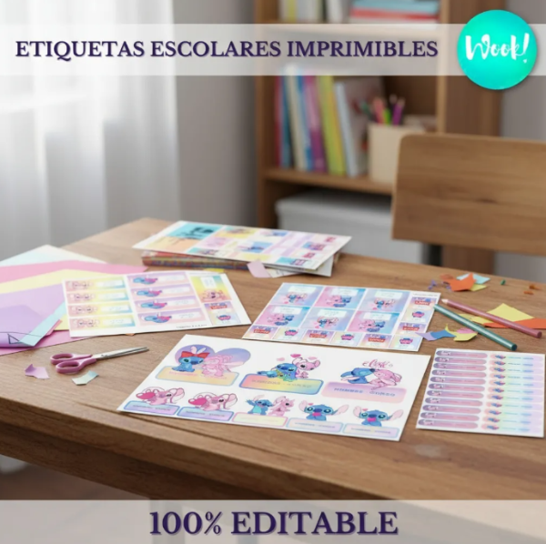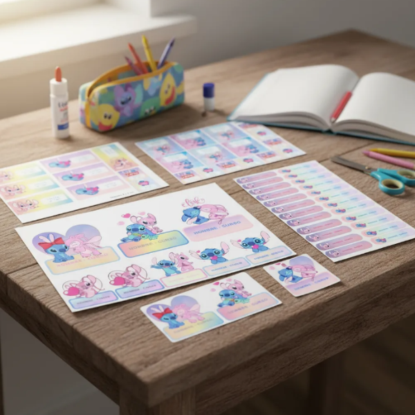 Kit Imprimible Etiquetas Escolares Stitch Y Angel Editables