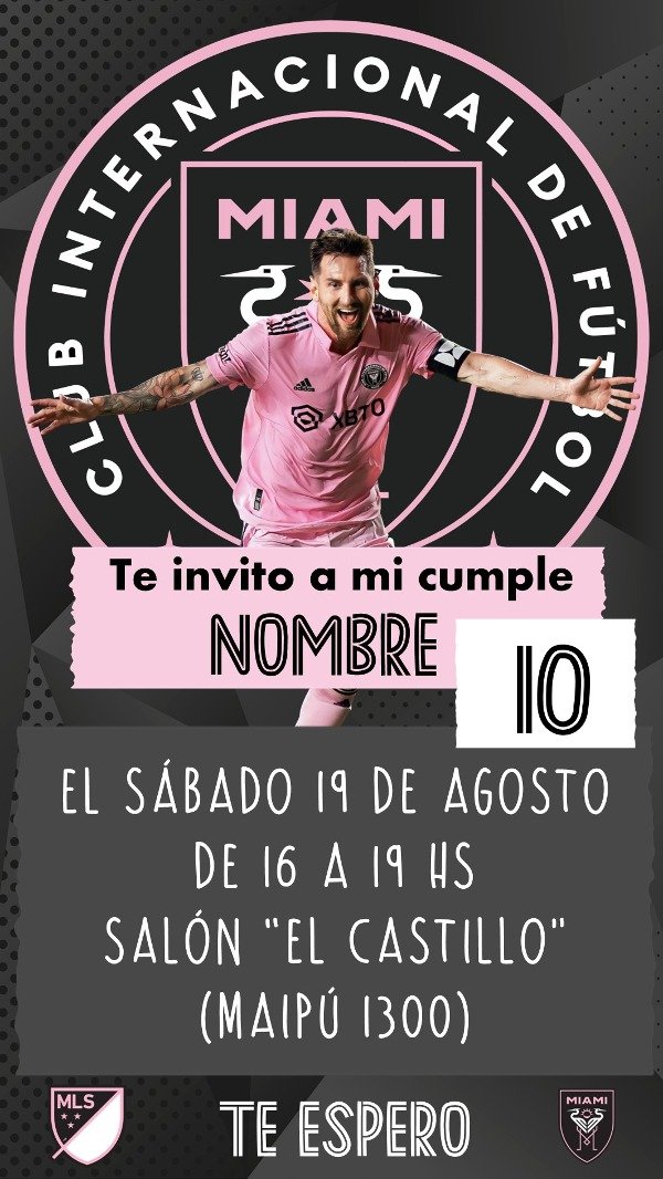 Invitación Tarjeta Digital Para Personalizar Messi Inter Miami