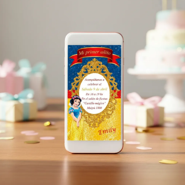 Invitación Digital Cumpleaños Personalizada Blancanieves