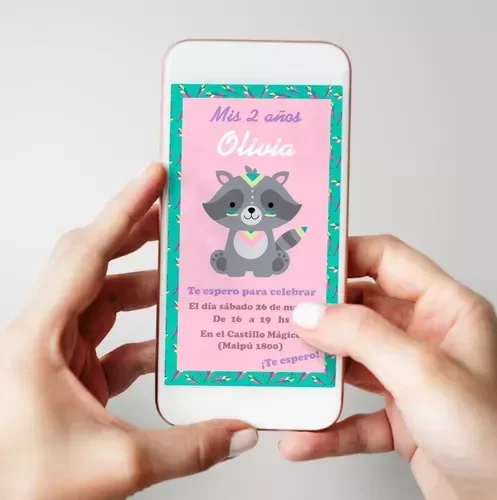 Invitación Digital Personalizada Animales Nórdicos Rosa