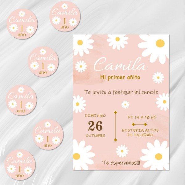Tarjeta de Invitación de Cumpleaños Digital + etiquetas circulares de 5 cm PERSONALIZADAS