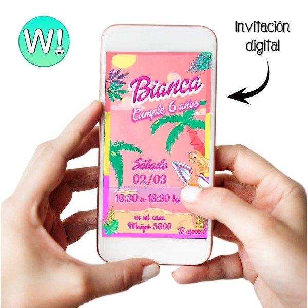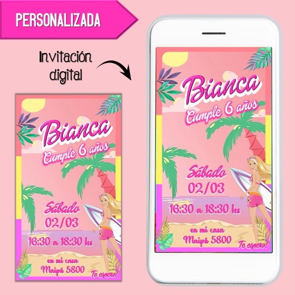 Invitación Digital Tarjeta Personalizada Barbie Pool Party