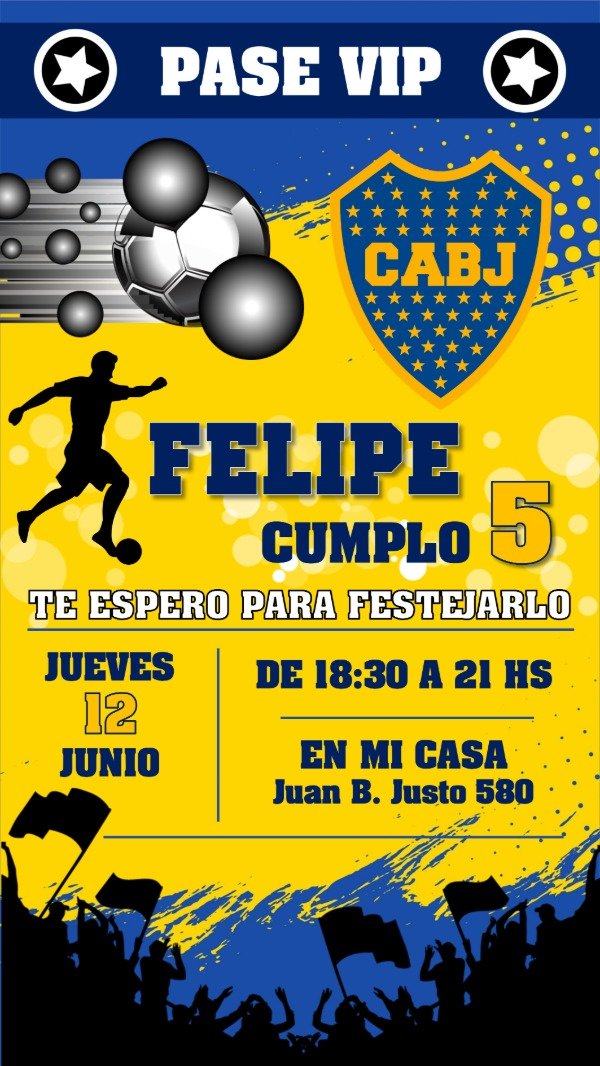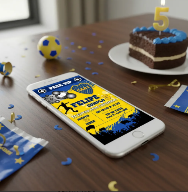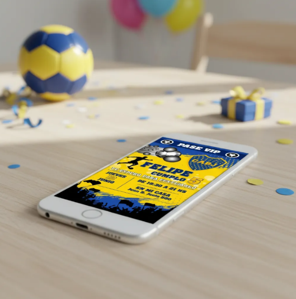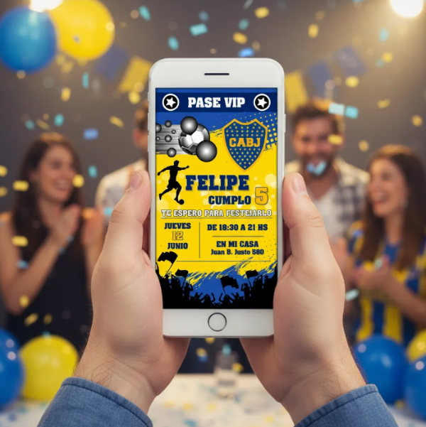 Invitación Tarjeta Digital Personalizada Boca Juniors Azul
