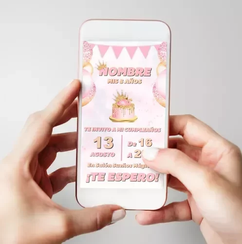 Invitación Tarjeta Digital Personalizada Cumpleaños Rosa