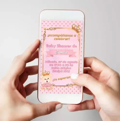Invitación Tarjeta Digital Personalizada Osita Princesa