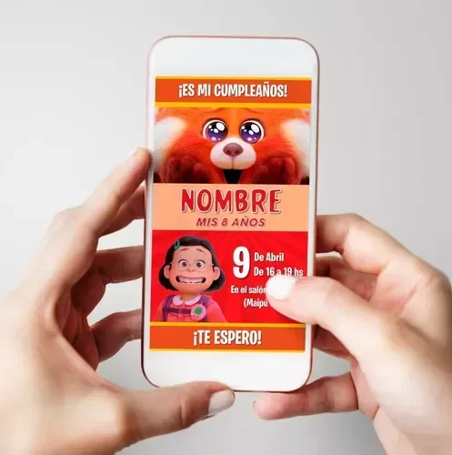 Invitación Tarjeta Digital Personalizada Turning Red