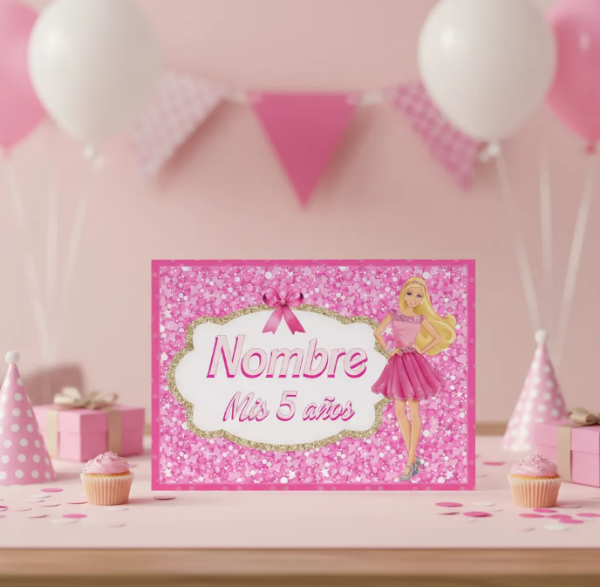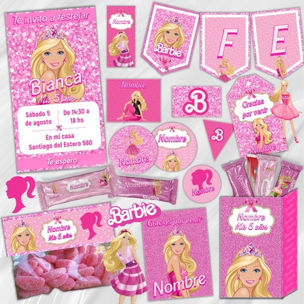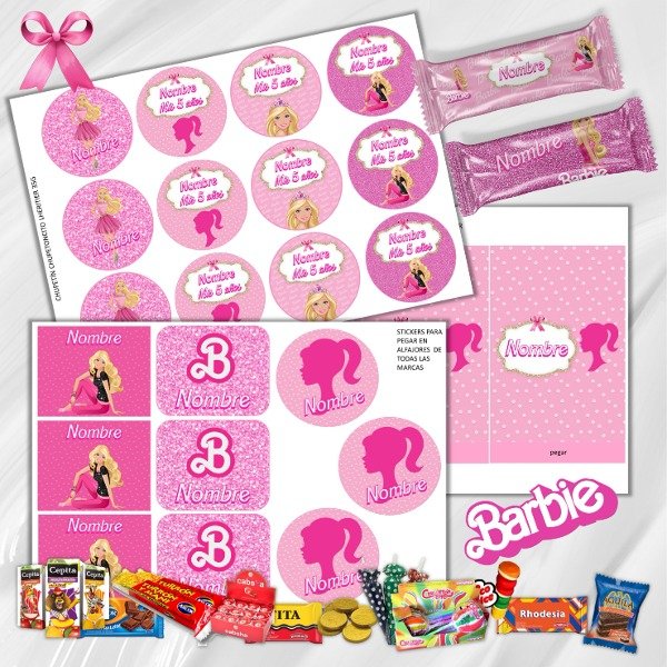 Kit Imprimible Cumpleaños Candy Bar Barbie Rosa Editable