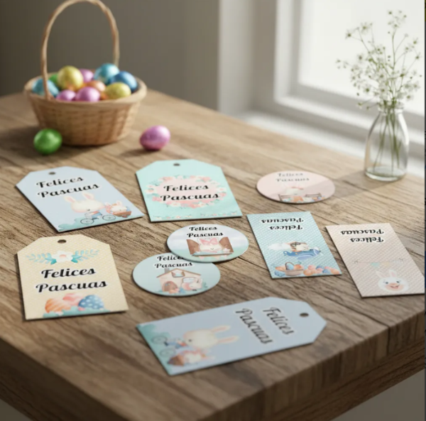 KIT IMPRIMIBLE TAGS FELICES PASCUAS