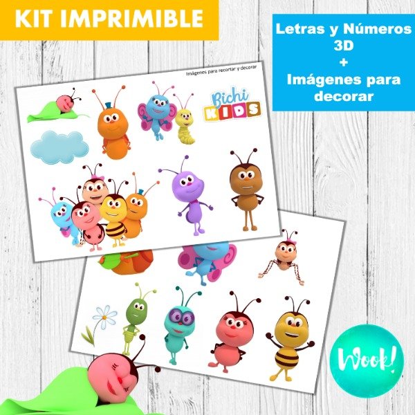 Kit imprimible de letras 3D (de la A a la Z) + Números 3D (del 0 al 9) + imágenes para decorar.