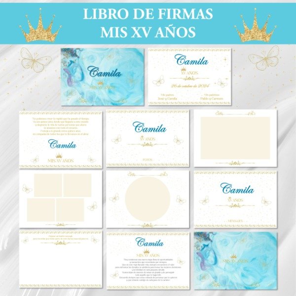 Kit Imprimible Libro De Firmas Mis 15 años - CELESTE ABSTRACTO