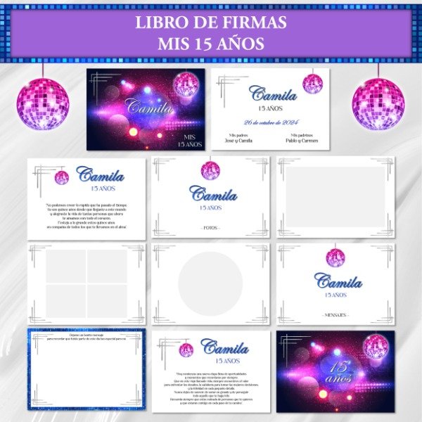 Kit Imprimible Libro De Firmas Mis 15 años - DISCO