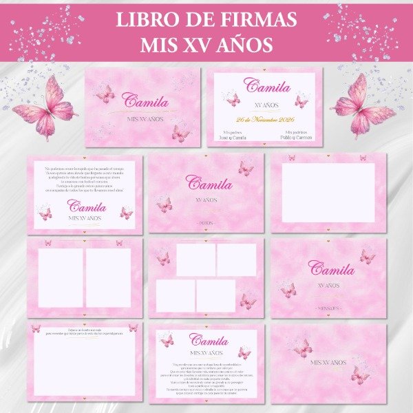Libro de firmas y recuerdos para atesorar los momentos más importantes de tus 15 años.