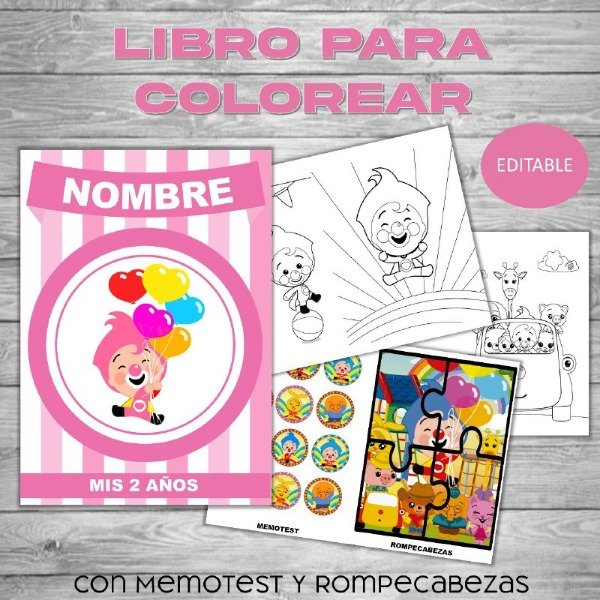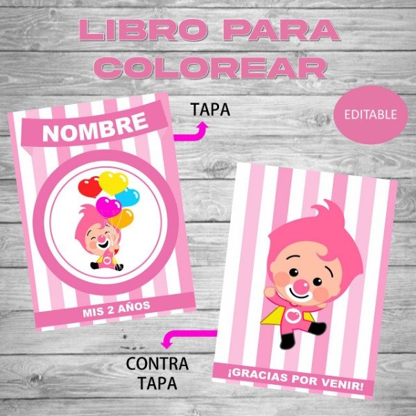 Libro Colorear Editable para Imprimir de Plim Plim Rosa