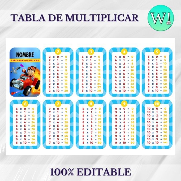 Este kit incluye 1 (uno) modelo de tablas de multiplicar 100% editables de 8x5cm en PowerPoint. También se envía en formato PDF para que puedas agregar el nombre en otros programas.