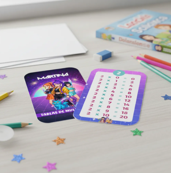 Este kit incluye 1 (uno) modelo de tablas de multiplicar 100% editables de 8x5cm en PowerPoint. También se envía en formato PDF para que puedas agregar el nombre en otros programas.