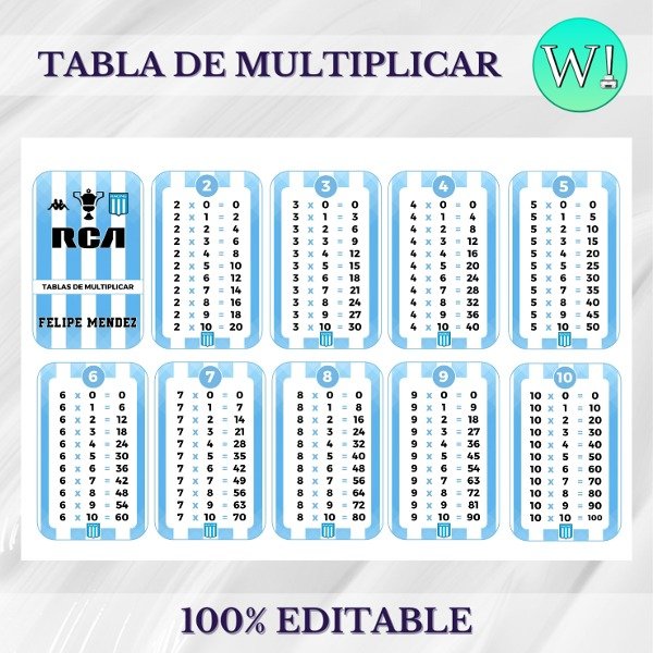 Este kit incluye 1 (uno) modelo de tablas de multiplicar 100% editables de 8x5cm en PowerPoint. También se envía en formato PDF para que puedas agregar el nombre en otros programas.