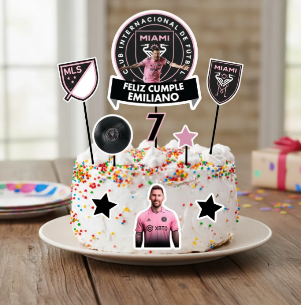 Kit Imprimible Topper Torta Messi Inter Miami Fc Editable